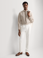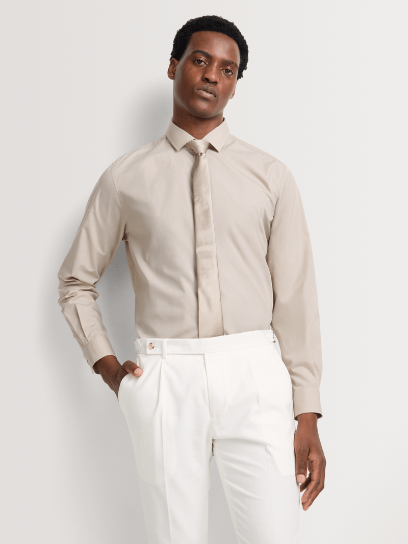 Defined by ease. Designed for everyday confidence. This regular-fit lounge shirt brings a clean, modern look to your rotation — relaxed enough for downtime, refined enough for on-the-go moments. Cut in a smooth poly-cotton blend, it keeps you comfortable while holding its shape through the day. The natural shade adds understated polish, making it a versatile move for work, weekends or winding down.