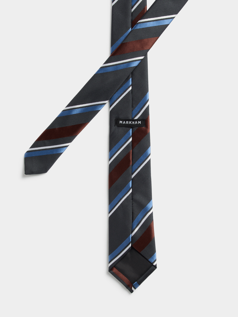 Add a refined finishing touch with the Markham Men's Fashion Stripe Grey and White Tie. Featuring a clean grey and white stripe design, it brings a sharp, contemporary edge to any smart look. Versatile and easy to style, this tie delivers polished detail with confident, modern appeal.