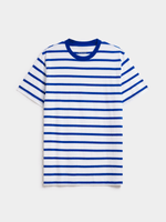 Elevate your casual look with our Markham Men's Horizontal Stripe T-Shirt in bright blue and white. Made from cotton for a comfortable slim fit. Features a stylish design with washing instructions for easy care. Perfect for everyday wear. Pair with your favorite bottoms for a laid-back vibe.