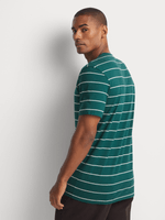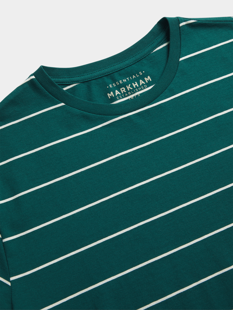Elevate your casual style with the Markham Horizontal Stripe T-Shirt in forest green/stone. Made from soft cotton, this slim-fit tee is perfect for everyday wear. Unique stripes add a touch of flair, while the washing instructions ensure long-lasting quality.