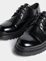 Step out in style with Markham's lace textured panel Derby shoes. These sleek black shoes feature PU fabrication for a polished look. With a comfortable fit and timeless design, they are a versatile addition to any wardrobe. Perfect for any occasion, these shoes are a must-have for the modern gentleman on the go.