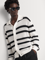 Stay cozy in style with our Markham men's long-sleeve crochet cardigan. Made from soft cotton, this white knitwear piece features a regular fit for all-day comfort. Hand wash only for easy care. Perfect for any casual occasion.