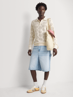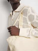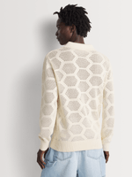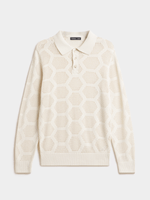 Stay stylish and cozy in this Markham men's long sleeve geo ecru knitwear golfer. Made from cotton for comfort. Features a regular fit for a relaxed feel. Hand wash for easy care. Perfect for any casual occasion.