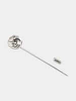Introducing the Markham Men's Lovers Knot Silver Lapel Pin. Made from high-quality metal, this pin is perfect for adding a touch of elegance to your outfit. With its sleek design and sturdy construction, it's a must-have accessory for any fashion-forward individual. Plus, it's easy to wear and sure to impress.