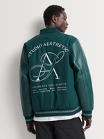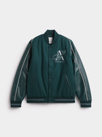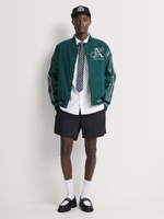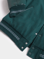 Stay stylish with the Markham Melton Varsity Pine Green Bomber Jacket. Made of polyester, this regular fit jacket is durable and comfortable. Features include washing instructions. Suitable for everyday wear with a timeless design.