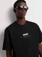 This black graphic T-shirt delivers bold street-led style with a relaxed silhouette, ideal for expressive everyday wear with a contemporary edge.
