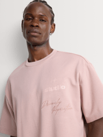 Stay relaxed and effortlessly expressive in our Oversized Graphic T-Shirt, designed in a soft dusty pink shade with understated front graphics for a clean, contemporary streetwear edge. The oversized silhouette delivers that modern, laid-back drape, while the tonal “studio” print and refined cursive script add depth without overpowering your look. Crafted from smooth, breathable cotton, it’s the perfect throw-on tee for elevated everyday comfort.