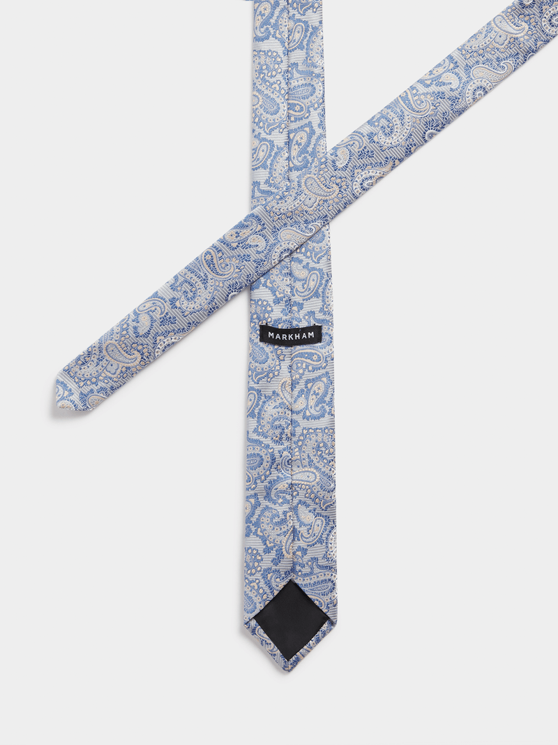 Elevate your style with the Markham pattern light paisley tie. Made from high-quality polyester, this tie is the perfect accessory for any occasion. Make a statement with this trendy and sophisticated piece that will surely add a touch of style to your wardrobe.