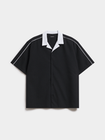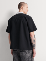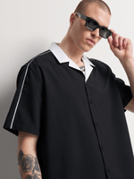 Stay cool in our MarkhamSeersucker Bowling Shirt. With a comfortable poly-cotton blend and an oversized fit, this stylish shirt is perfect for any occasion. Easy to care for with cool iron and dry clean instructions.