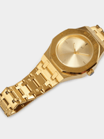 Elevate your look with the Markham Men's Prestige Gold Formal Watch. Designed with a sleek gold tone finish, it delivers a refined and sophisticated presence. The clean dial and classic detailing create a timeless aesthetic with modern appeal. Crafted for polished styling, it pairs effortlessly with elevated outfits. A standout timepiece that brings confidence, elegance, and lasting impression to your wrist.