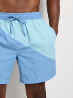 A clean swim essential with modern colourblock appeal. These regular fit swim shorts are crafted from lightweight nylon with a bold two-tone diagonal design—quick-drying, comfortable, and made for summer.