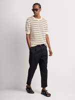 Stay cool and stylish this summer with the Markham Men's Crochet Stripe Knitwear. Crafted in a breathable ecru crochet fabric, this lightweight knit offers effortless comfort while keeping you on-trend. Its subtle striped pattern adds a touch of texture and visual interest, making it perfect for casual outings or laid-back weekend vibes. Pair it with shorts or light denim for a fresh summer look.