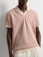 This ecru and red patterned golfer delivers refined smart-casual style with a comfortable, breathable feel, ideal for polished everyday looks with a modern edge.