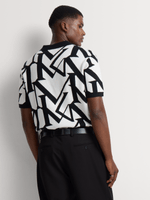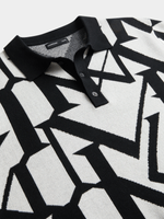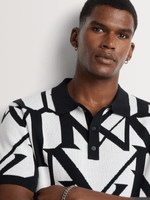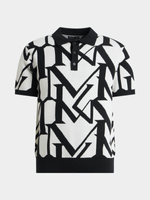 Strike a modern balance with this Regular Fit Monogram Knitwear Golfer. The smooth knit construction offers comfort with a polished finish, while the black-on-white monogram pattern delivers bold visual impact. Finished with a classic golfer collar and button placket, it brings sharp, versatile energy to any smart-casual lineup.