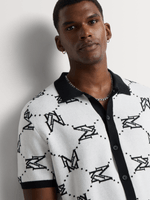 Elevate your smart-casual rotation with the Markham Men’s Regular Fit Monogram White Knitwear Button-Through — a bold, contemporary piece that blends graphic impact with refined ease. The regular fit offers a clean, structured silhouette, while the soft knit construction delivers comfort with a polished hand-feel. Finished with an all-over MK-inspired monogram and contrast black trims, this button-through design brings a modern edge to layering. Wear it buttoned for a sleek finish or open over a tee for relaxed confidence.