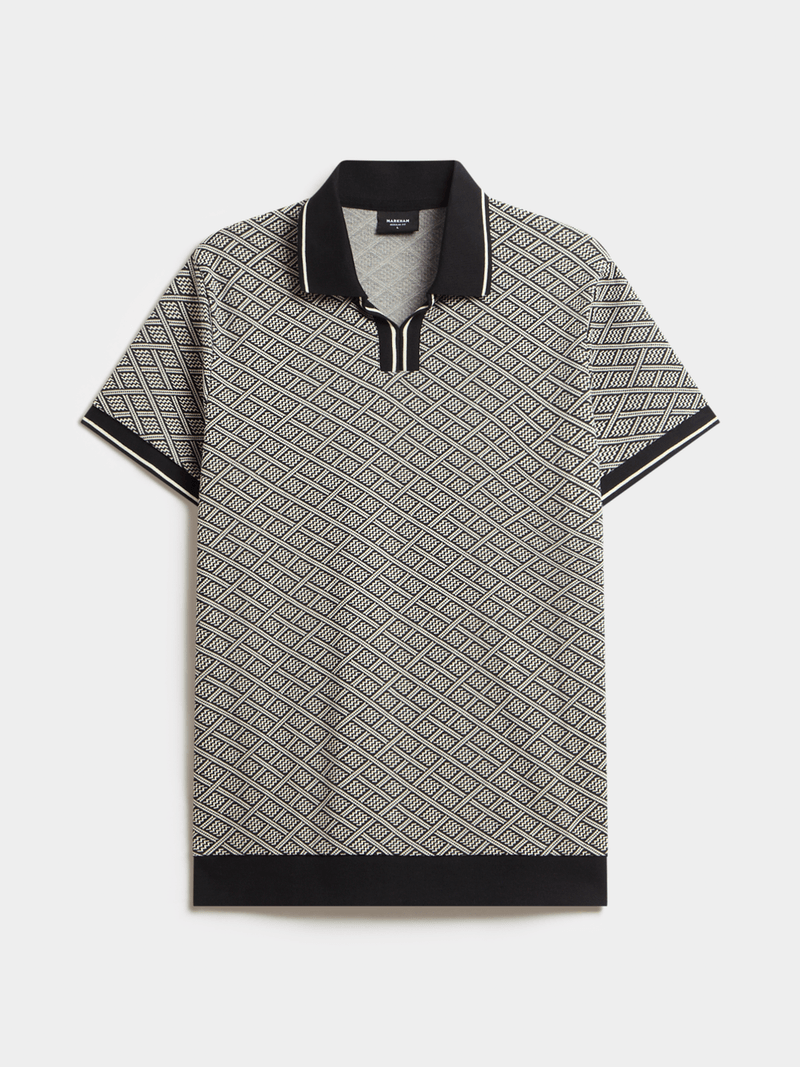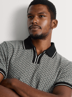 Smart-casual style with refined pattern detail. This regular fit golfer features an all-over mono pattern with a modern notch neckline, delivering breathable comfort and a polished look that works from weekday wear to weekends.