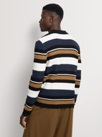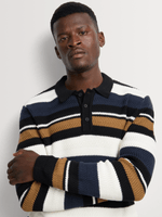 This regular fit knitwear golfer is crafted from a comfortable cotton blend, combining breathable wear with a multicolour stripe design for a confident, modern finish.