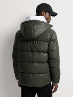 The Markham Men's Regular Fit Rubberized Fatigue Puffer Jacket delivers modern utility with a sleek rubberized PU finish. Designed for warmth and versatility, it features a detachable hood and padded construction for everyday cold-weather wear.
