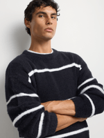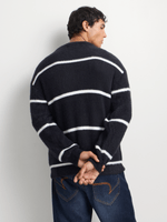 The Markham Men's Regular Fit Stripe Black Knitwear combines comfort with style, featuring bold white stripes on a black base. Crafted from a soft cotton blend, it's perfect for a relaxed yet refined look.