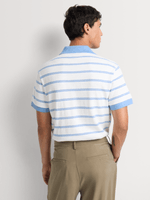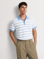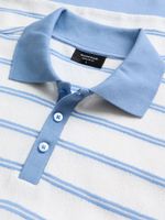 Elevate your casual look with the Markham Regular Fit Light Blue Golfer. Crafted from comfortable cotton fabric. Featuring classic vertical stripes and button detailing. Easy care with warm wash and cool iron. Look sharp and feel confident wherever you go.