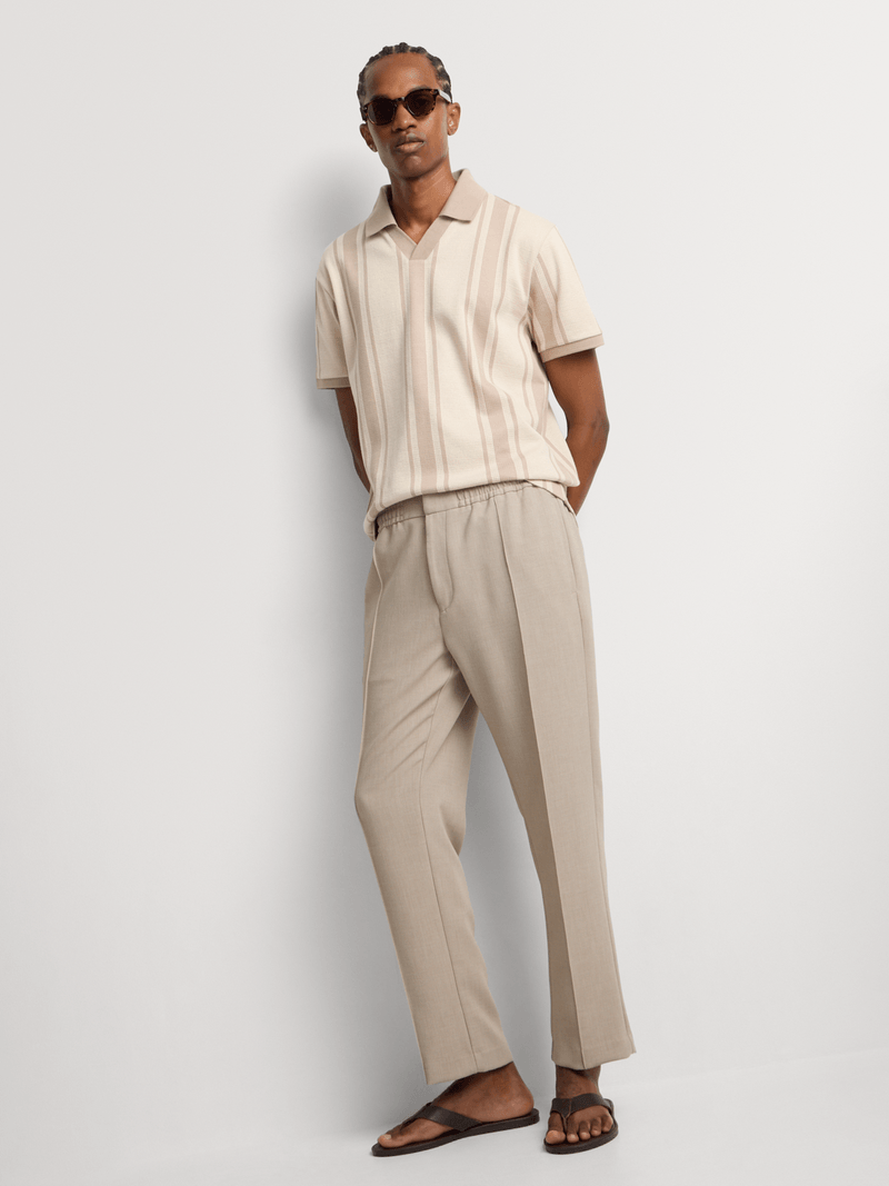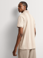 A refined take on everyday ease, this Regular Fit Natural Vertical Stripe Golfer delivers a clean, modern aesthetic with its soft tonal stripes and relaxed drape. The crepe knit construction adds a subtle textured feel, bringing lightweight comfort ideal for warm days and effortless layering. Understated yet elevated, it’s made for men who value simplicity with a sharp finish.