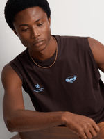 Get your hands on the Markham relaxed fit graphic vest in chocolate. Crafted from comfy single jersey fabric, this must-have piece features a stylish graphic design. Easy to clean and perfect for casual wear. Add it to your wardrobe today!