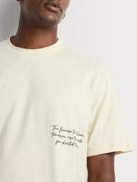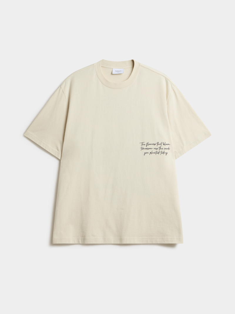 Keep it easy, expressive, and effortlessly modern with the Markham Men’s Relaxed Fit Milk Graphic T-Shirt. The relaxed silhouette delivers a comfortable, laid-back drape, while the soft milk tone gives the tee a clean, warm aesthetic. A minimal script detail at the chest sets the tone up front, while the bold illustrated floral artwork at the back brings a fresh, creative edge. Crafted from breathable cotton, this tee delivers all-day comfort with a standout identity — perfect for off-duty styling with personality.