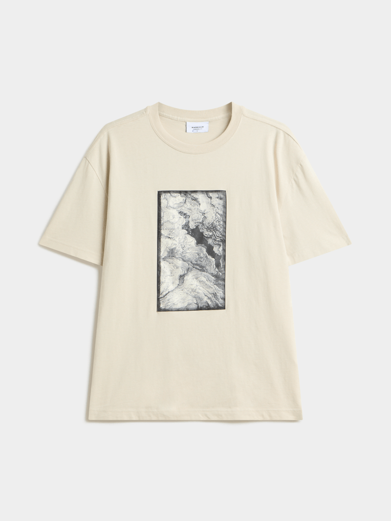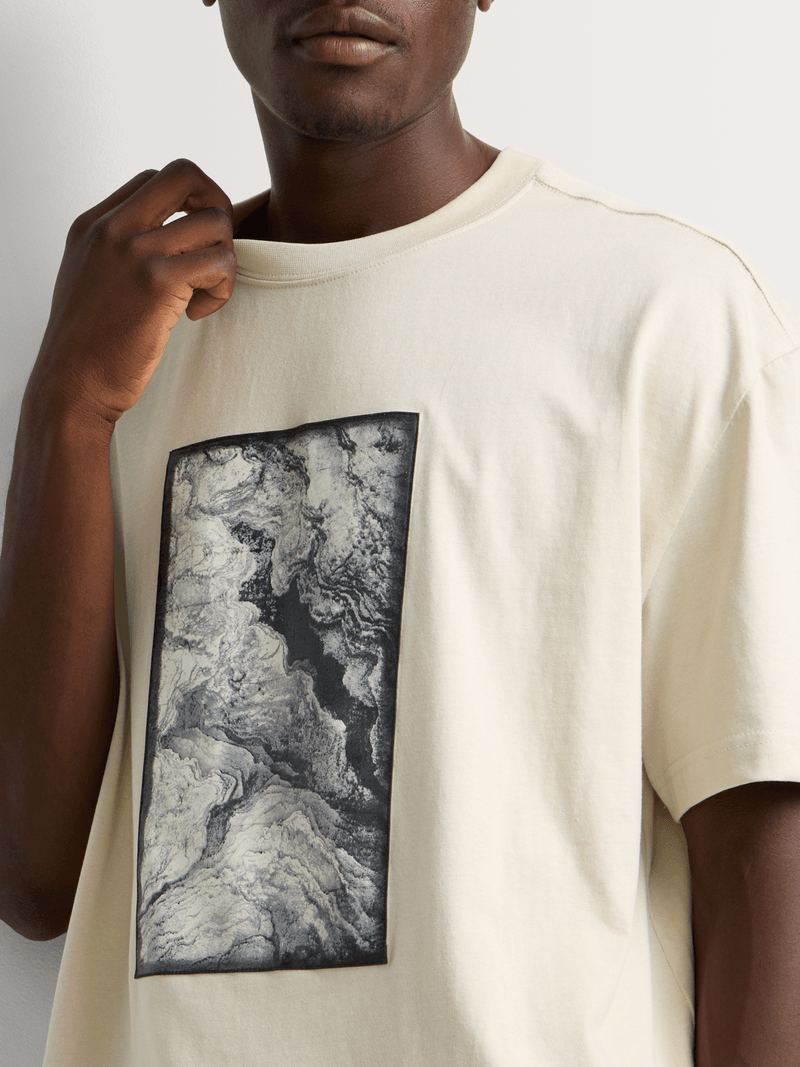 A laid-back statement piece with a modern edge. This relaxed fit stone graphic T-shirt features a bold front patch design, delivering effortless comfort with standout appeal.