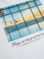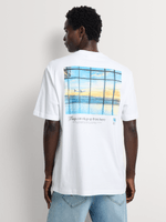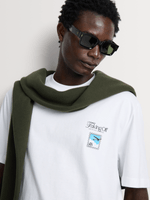 Relaxed comfort meets graphic-led style. This white T-shirt delivers an easy, contemporary feel with a travel-inspired edge—ideal for everyday off-duty dressing.