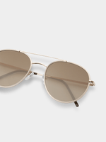 Elevate your look with the Markham Men's Rounded Gold Aviator Sunglasses. Designed with a refined aviator shape and rounded edges, they offer a modern update to a timeless style. The gold tone frame adds a warm, premium finish that stands out with subtle sophistication. Lightweight and easy to wear, they suit everyday styling with ease. A polished accessory that delivers classic influence with a contemporary edge.