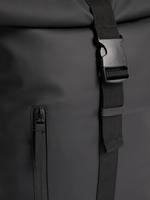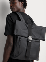 The Markham Men's Rubberised Foldover Backpack in black combines practical style with a sleek urban look. Featuring a wide fit and robust rubberised texture, it offers ample storage with a secure foldover closure. Crafted from a durable poly-viscose mix, this accessory adds contemporary flair to any ensemble.
