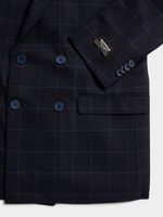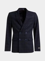 Make a bold statement with the Markham Skinny Double-Breasted Windowpane Navy Suit Jacket. Cut in a slim silhouette, this jacket features a striking windowpane pattern set against a deep navy base. The double-breasted design brings an air of classic sophistication, while modern tailoring ensures a sleek, fashion-forward profile. Ideal for those moments when you want to stand out with elegance.