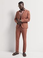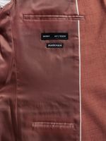 Refresh your tailored look with the Markham Men's Skinny Fit Linen Rust Suit Jacket. Crafted from a lightweight linen blend, this jacket combines modern structure with breathable comfort, perfect for warm-weather occasions. The rich rust tone adds a bold yet refined touch, while the skinny fit delivers a clean, contemporary silhouette. Designed for versatility, it’s a standout piece that transitions effortlessly from daytime events to evening settings.