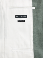 Infuse your smart-casual wardrobe with effortless sophistication through the Markham Slim Fit Cotton Linen Jacket in Green. Crafted from a lightweight cotton-linen blend, this jacket offers breathability and relaxed structure, ideal for warm-weather dressing. The muted green hue adds subtle distinction, while the slim fit ensures a refined silhouette.