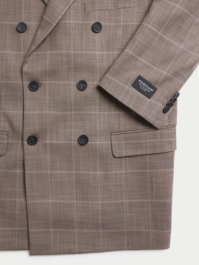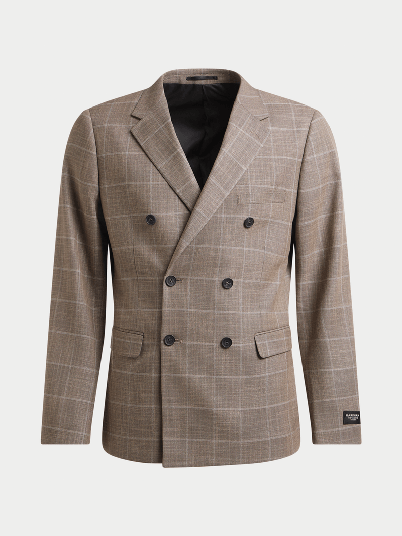 A modern take on classic tailoring, this double-breasted suit jacket redefines sophistication with its structured fit, refined check pattern, and sharp lapels. Crafted for effortless versatility, it transitions seamlessly from polished formalwear to contemporary casual styling. The matching trousers complete the look, creating a cohesive ensemble that exudes confidence and refined taste.