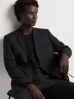 Crafted in a refined herringbone weave, this slim-fit double-breasted jacket is your modern take on classic tailoring. With structured shoulders, peak lapels, and a sleek silhouette, it's designed to command attention while remaining effortlessly versatile. Whether styled for the boardroom or a formal evening event, this piece offers a sophisticated edge that elevates any occasion.