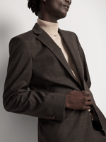 Elevate your formalwear with the Markham Men's Slim Double Breasted Suit Jacket, designed with a modern windowpane check in a rich brown tone. This tailored piece features a double-breasted front, peak lapels, and a textured weave that adds depth to your look. Crafted for a slim fit, it contours to your frame without compromising comfort. Ideal for office settings, weddings, or upscale social events, this jacket pairs seamlessly with its matching trousers or can be styled as a sharp separate.