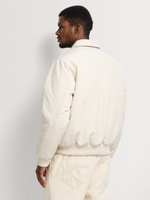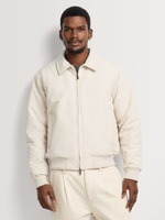 Smart, modern, and easy to wear. This slim fit padded bomber jacket features a refined collared design and smooth polyester fabrication, delivering lightweight warmth with a clean, structured finish.