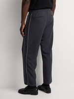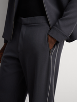 A modern tailored essential with a refined sports-inspired edge. These slim fit steel blue trousers feature textured poly-viscose fabrication for comfort, structure, and a polished finish.