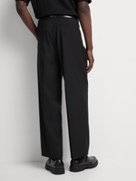 Refined meets relaxed in the Markham Men's Smart Relaxed Fit 2 Pleat Black Trouser. Designed with a modern wide-leg silhouette and classic double pleats, these trousers offer a sophisticated shape with everyday comfort. Crafted from smooth, structured fabric, they drape effortlessly for a clean finish that works from office hours to after-hours. The tailored waistband and belt loops complete the smart look, while the relaxed fit gives it a contemporary edge.