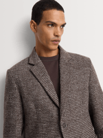 A modern tailored essential with heritage-inspired texture. This smart slim fit single-breasted blazer features a refined houndstooth pattern in a rich chocolate and ecru blend, delivering structured polish with distinctive character.