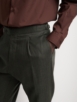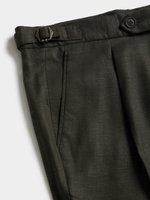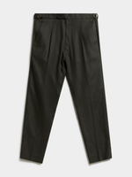 Refined tailoring with a contemporary edge. These smart tapered trousers feature a subtle herringbone texture, front pleats, and side adjustors for a polished yet relaxed silhouette.
