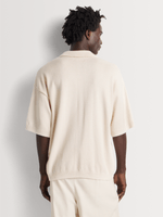 Stay stylish and comfortable in our Markham men's ecru knitwear golfer. Made from 100% cotton for a relaxed fit. Hand wash only, no ironing or dry cleaning needed. Designed for ultimate comfort and style. Perfect for any casual occasion. Easy to wear and care for.