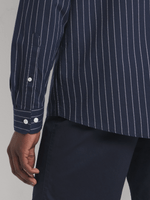 Stay stylish and comfortable with our Markham Stripe oxford shirt. Made from cotton, this regular fit shirt features a classic black and white stripe pattern. Easy to care for with cool wash, warm iron, and dry cleanable instructions. Proudly crafted in South Africa. Perfect for any casual occasion.