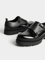Step out in style with Markham's Textured Monk Black Shoe. Crafted with high-quality PU fabrication, these shoes offer a sleek and sophisticated look. Perfect for any occasion, these versatile shoes are comfortable and durable. Elevate your outfit with this timeless footwear choice.