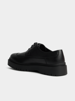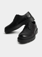 This chunky black shoe features statement topstitch detailing, a durable lace-up construction, and a solid chunky sole that delivers everyday comfort with confident, fashion-forward impact—designed to ground your look while staying versatile and easy to wear.