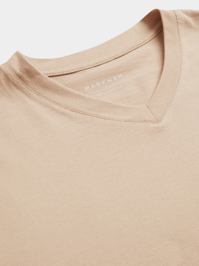 Elevate your collection with the Markham Men’s V-Neck Midweight Essential Stone T-Shirt. Crafted from 100% cotton, this versatile piece features a classic V-neckline and regular fit for a polished yet relaxed look. Midweight cotton T-shirt with a clean silhouette. Balanced structure and softness for refined everyday style. Essential for any contemporary wardrobe.