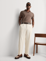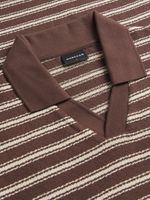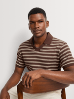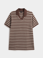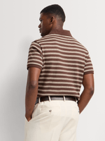 Elevate your casual style with our Markham variegated stripe golfer in brown and ecru. This classic piece features a regular fit and is crafted from soft cotton fabric. Easy to care for, simply wipe down with a damp cloth. Perfect for any occasion, this golfer is a must-have in every wardrobe.