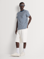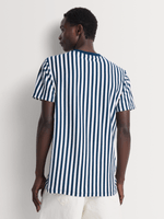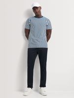 Elevate your casual look with our Markham Vertical Stripe T-Shirt. Made from soft cotton for all-day comfort. Regular fit for easy wear. Pair with jeans for a laid-back style. Machine washable for easy care. Available in white/teal color. A must-have addition to your wardrobe.