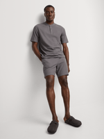 Get cozy in the Markham knit waffle charcoal sleepwear shorts. Made from a comfortable cotton blend, these shorts are perfect for lounging or sleeping. Easy to care for with warm wash, cool iron, and dry-cleanable instructions. Enjoy relaxed comfort in style.